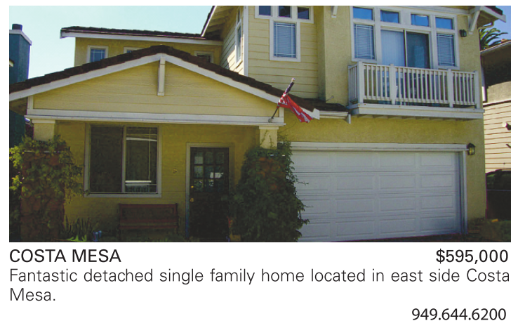 COSTA MESA $595,000 Fantastic detached single family home located in east side Costa Mesa.