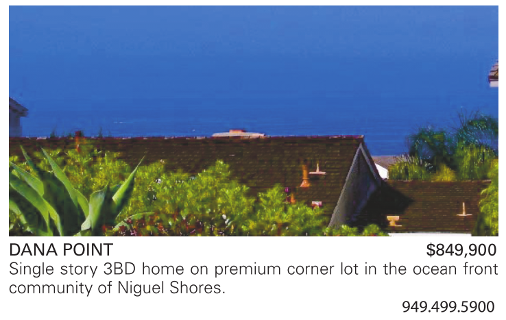 DANA POINT $849,900 Single story 3BD home on premium corner lot in the ocean front community of Niguel Shores.