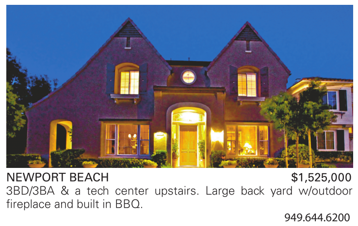 NEWPORT BEACH $1,525,000 3BD/3BA & a tech center upstairs. Large back yard w/outdoor fireplace and built in BBQ.