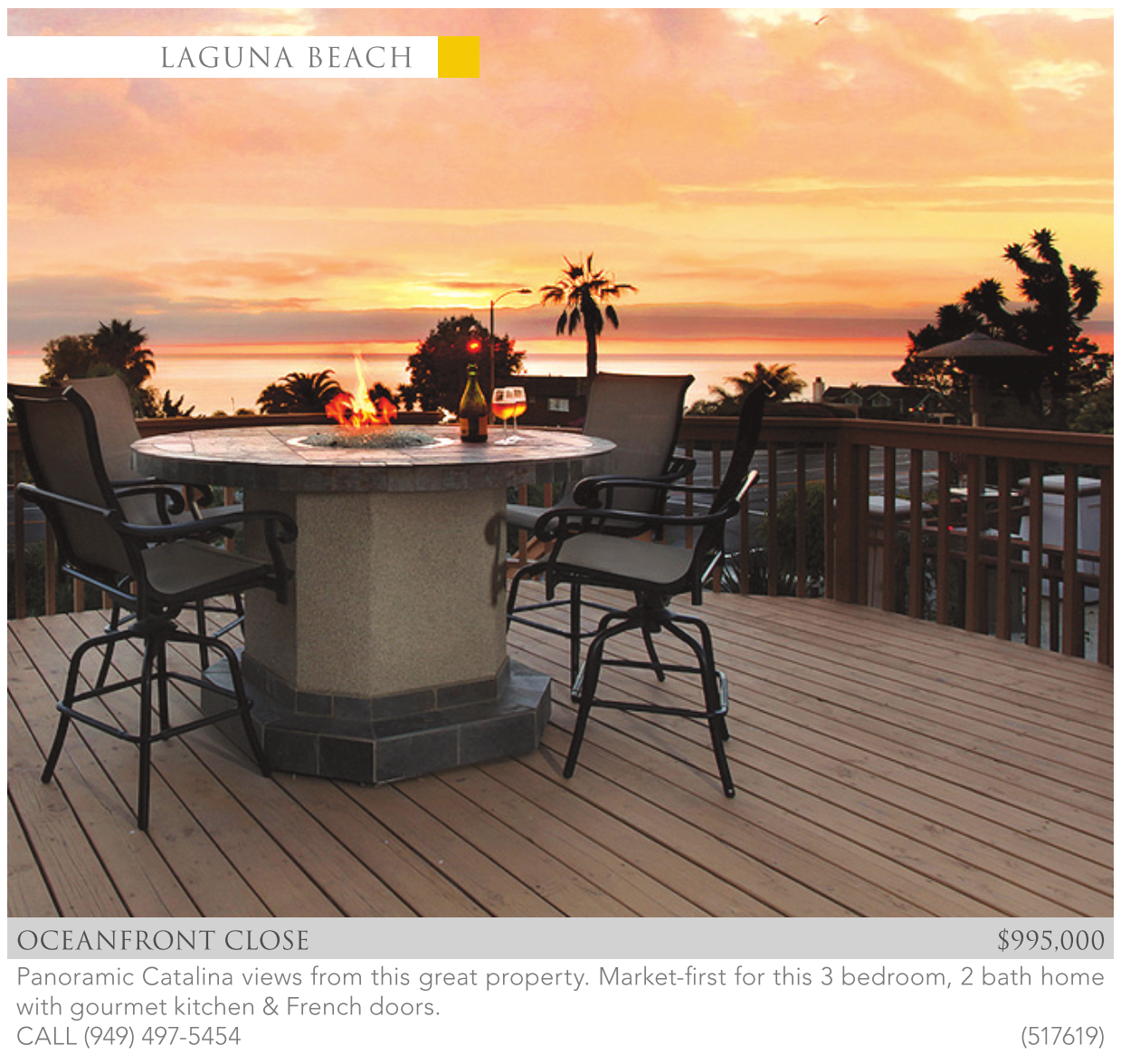 OCEANFRONT CLOSE $995,000 Panoramic Catalina views from this great property. Market-first for this 3 bedroom, 2 bath home with gourmet kitchen & French doors. CALL (949) 497-5454 (517619)