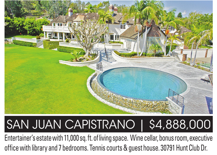 Entertainer’s estate with 11,000 sq. ft. of living space. Wine cellar, bonus room, executive office with library and 7 bedrooms. Tennis courts & guest house. 30791 Hunt Club Dr.