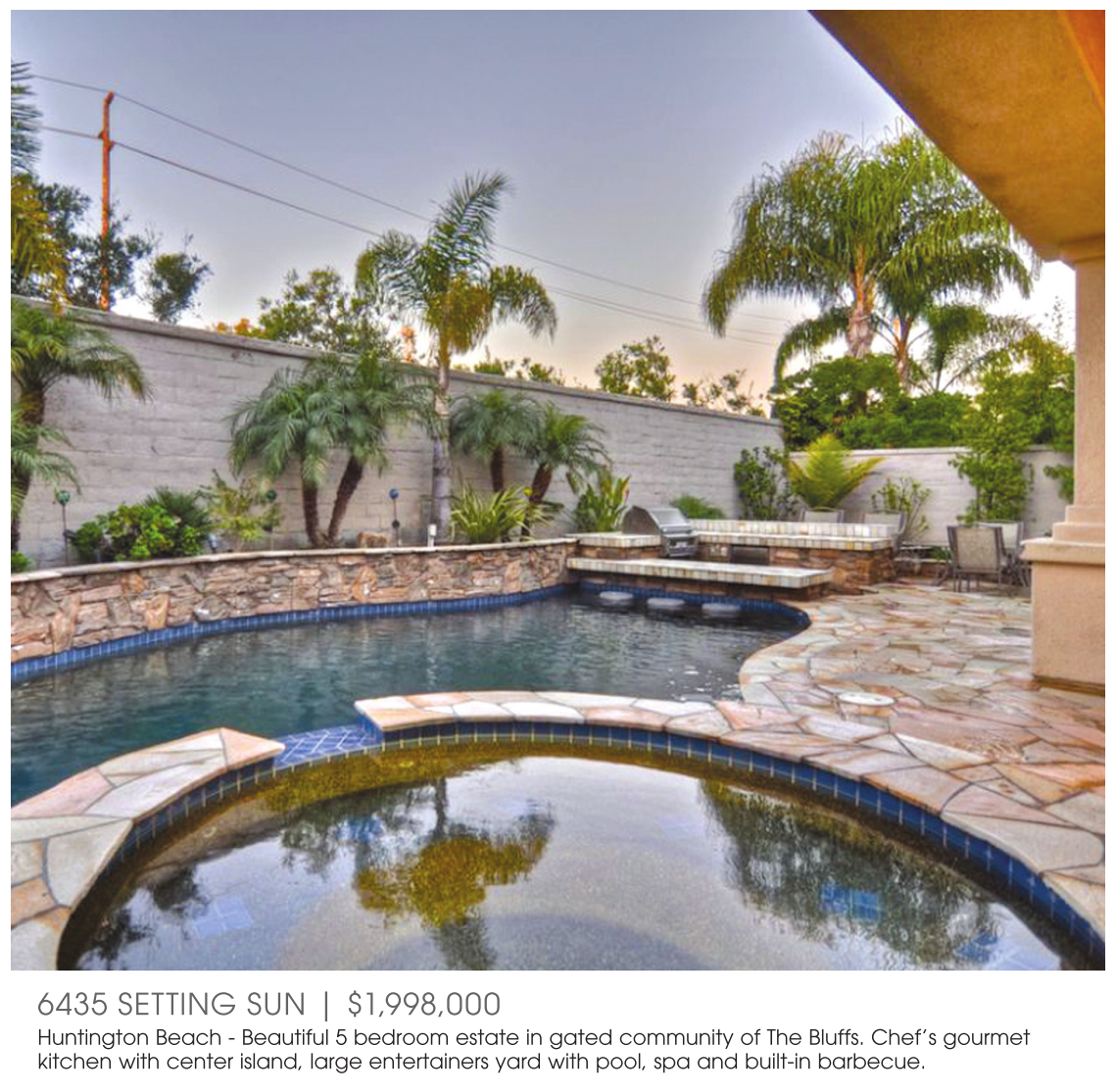Huntington Beach - Beautiful 5 bedroom estate in gated community of The Bluffs. Chef’s gourmet kitchen with center island, large entertainers yard with pool, spa and built-in barbecue.