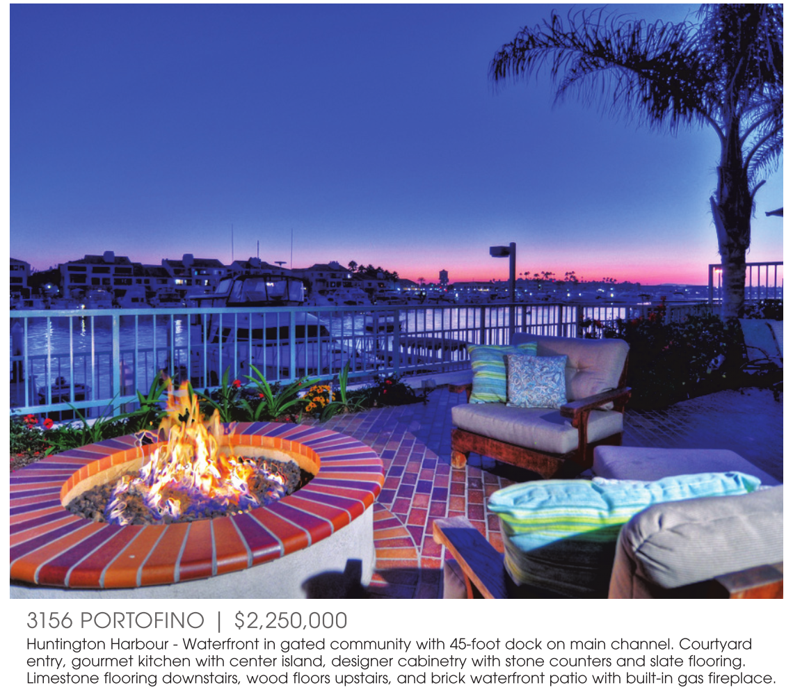 Huntington Harbour - Waterfront in gated community with 45-foot dock on main channel. Courtyard entry, gourmet kitchen with center island, designer cabinetry with stone counters and slate flooring. Limestone flooring downstairs, wood floors upstairs, and brick waterfront patio with built-in gas fireplace.