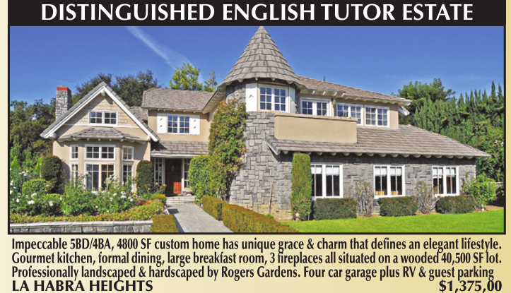 Impeccable 5BD/4BA, 4800 SF custom home has unique grace & charm that defines an elegant lifestyle. Gourmet kitchen, formal dining, large breakfast room, 3 fireplaces all situated on a wooded 40,500 SF lot. Professionally landscaped & hardscaped by Rogers Gardens. Four car garage plus RV & guest parking LA HABRA HEIGHTS $1,375,00