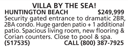 patio. Spacious living room, new flooring & Corian counters. Close to pool & spa. (517535) CALL (800) 387-7925