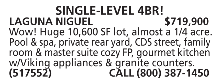 LAGUNA NIGUEL $719,900 Wow! Huge 10,600 SF lot, almost a 1/4 acre.