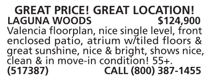 great sunshine, nice & bright, shows nice, clean & in move-in condition! 55+. (517387) CALL (800) 387-1455
