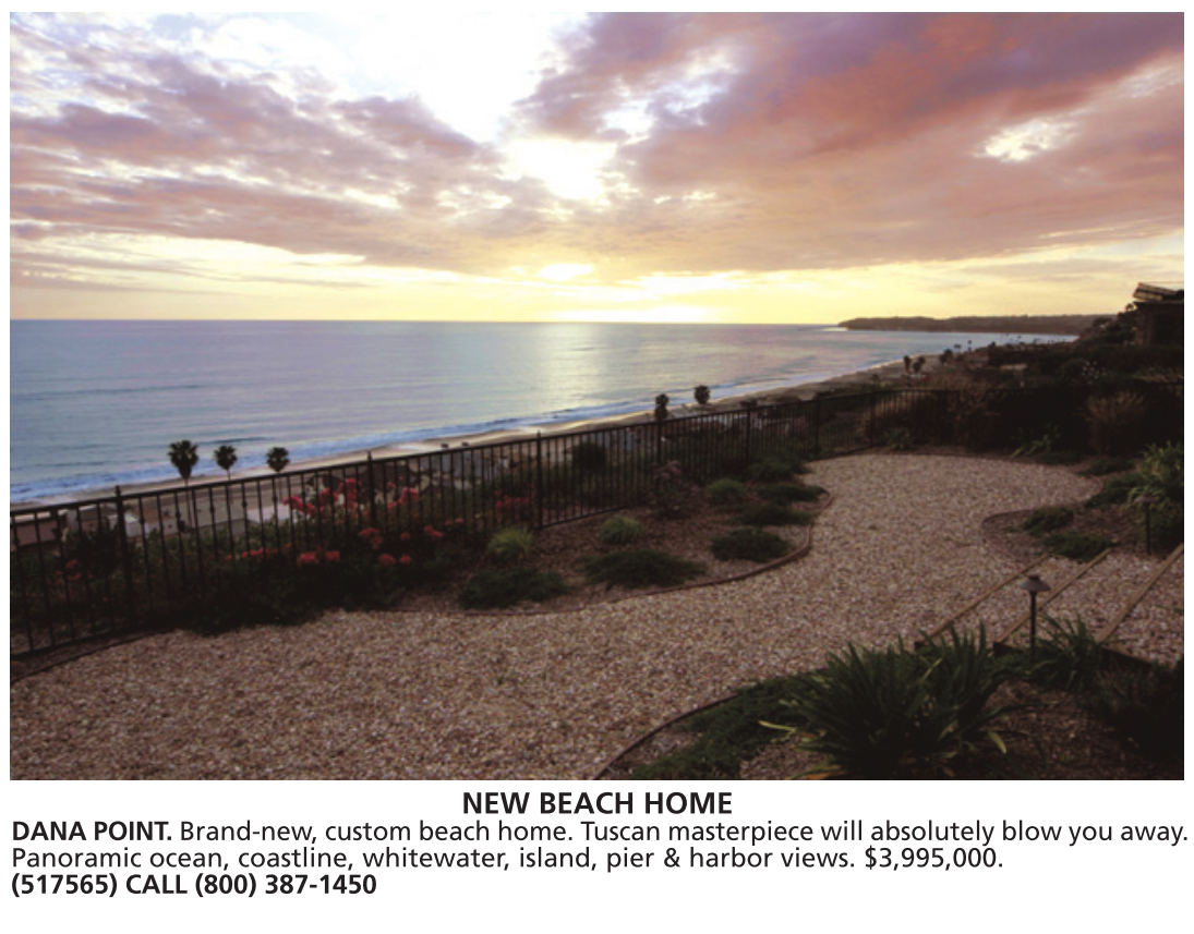 NEW BEACH HOME DANA POINT. Brand-new, custom beach home. Tuscan masterpiece will absolutely blow you away.
