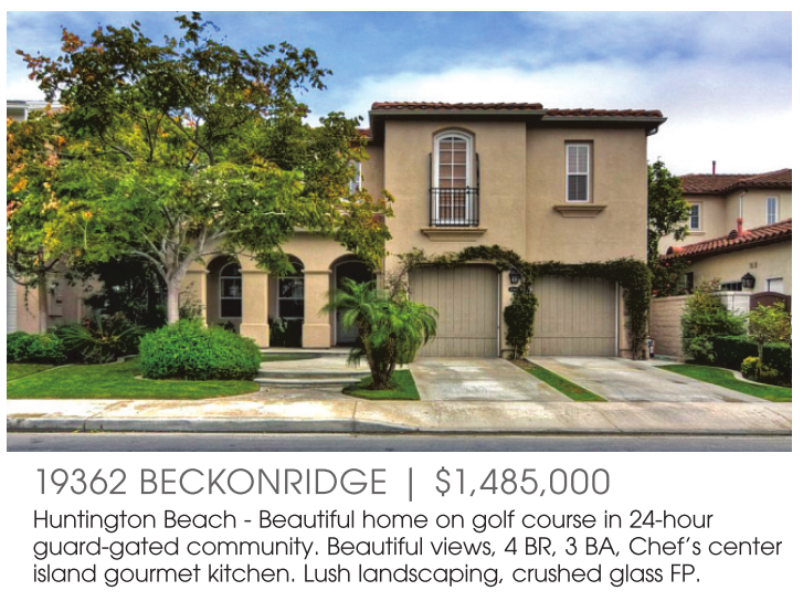 Huntington Beach - Beautiful home on golf course in 24-hour guard-gated community. Beautiful views, 4 BR, 3 BA, Chef’s center island gourmet kitchen. Lush landscaping, crushed glass FP.