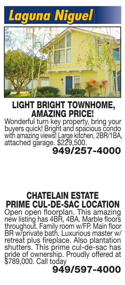 CHATELAIN ESTATE PRIME CUL-DE-SAC LOCATION Open open floorplan. This amazing new listing has 4BR, 4BA. Marble floors throughout. Family room w/FP. Main floor BR w/private bath. Luxurious master w/ retreat plus fireplace. Also plantation shutters. This prime cul-de-sac has pride of ownership. Proudly offered at $789,000. Call today 949/597-4000