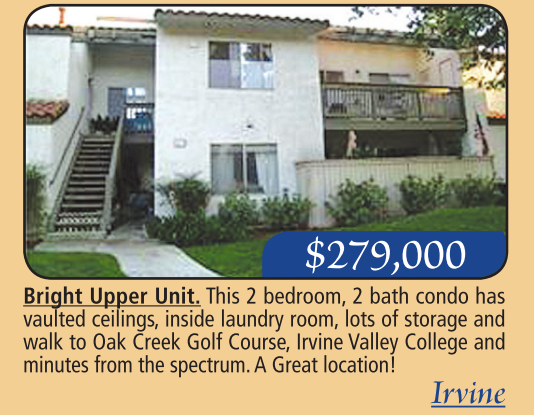 Bright Upper Unit. This 2 bedroom, 2 bath condo has vaulted ceilings, inside laundry room, lots of storage and walk to Oak Creek Golf Course, Irvine Valley College and minutes from the spectrum. A Great location!
