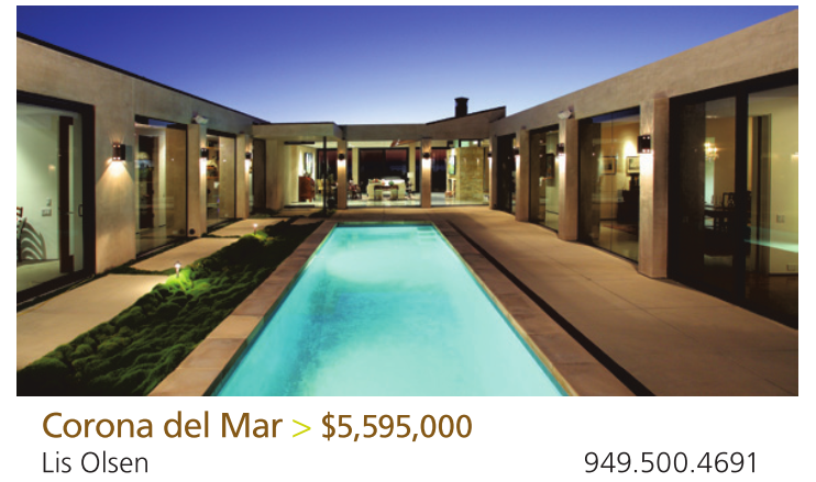 Corona del Mar > $5,595,000 Lis Olsen 949.500.4691
