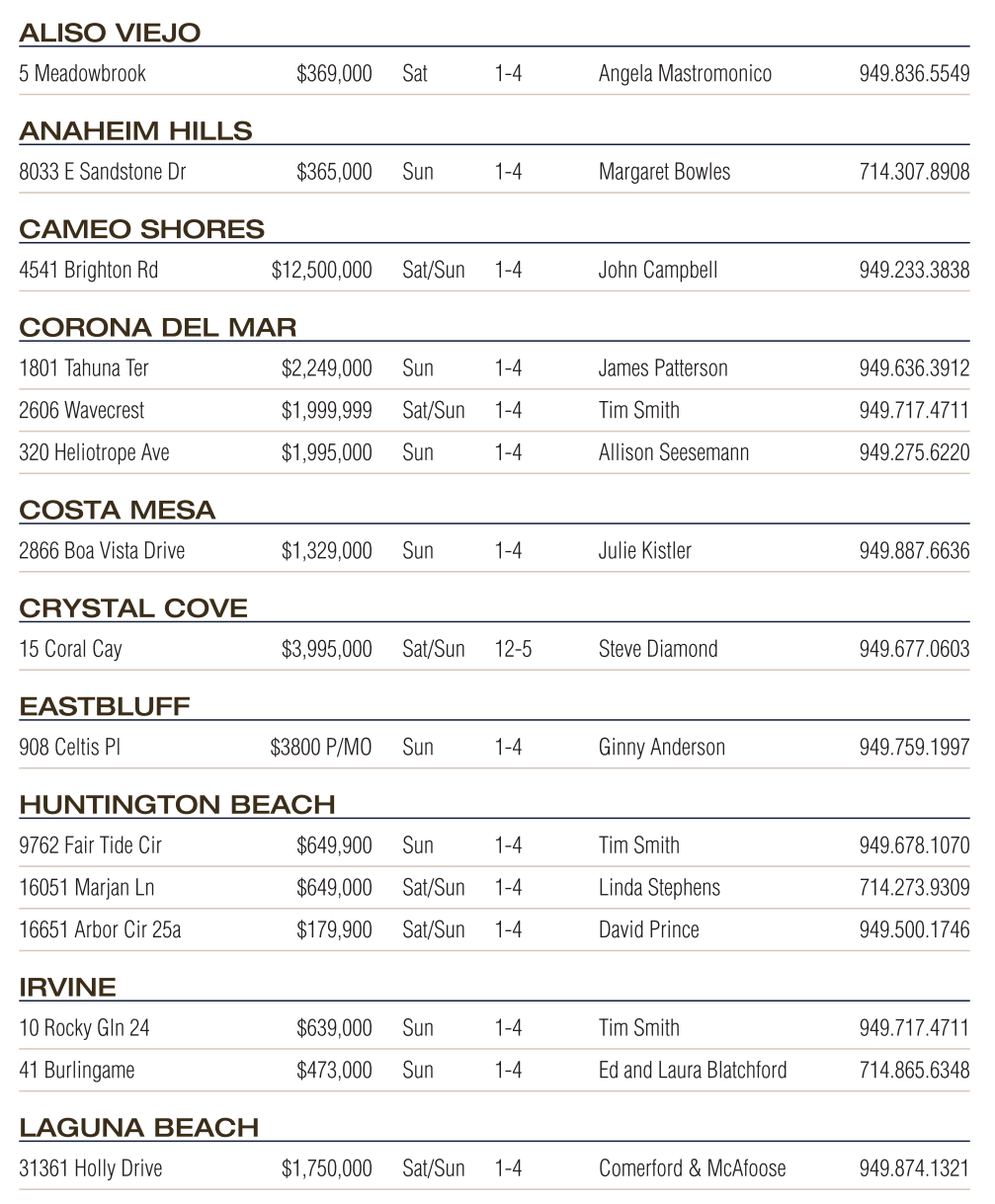 2866 Boa Vista Drive $1,329,000 Sun 1-4 Julie Kistler 949.887.6636