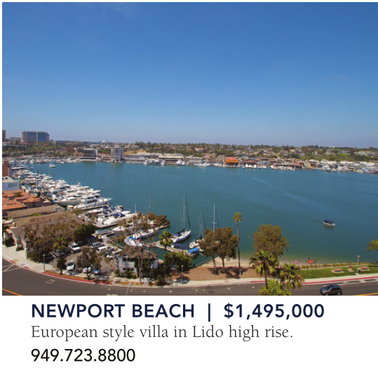 NEWPORT BEACH | $1,495,000 European style villa in Lido high rise. 949.723.8800