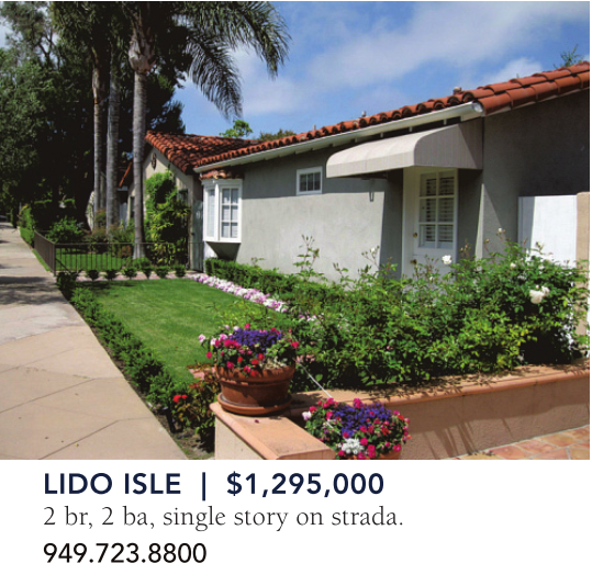 LIDO ISLE | $1,295,000 2 br, 2 ba, single story on strada. 949.723.8800