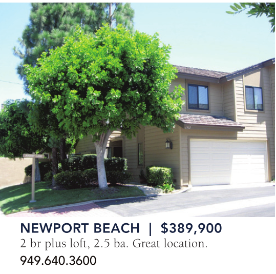 NEWPORT BEACH | $389,900 2 br plus loft, 2.5 ba. Great location. 949.640.3600