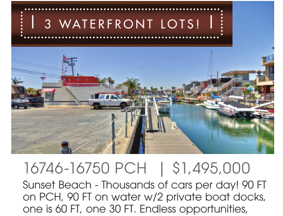 Sunset Beach - Thousands of cars per day! 90 FT on PCH, 90 FT on water w/2 private boat docks, one is 60 FT, one 30 FT. Endless opportunities,