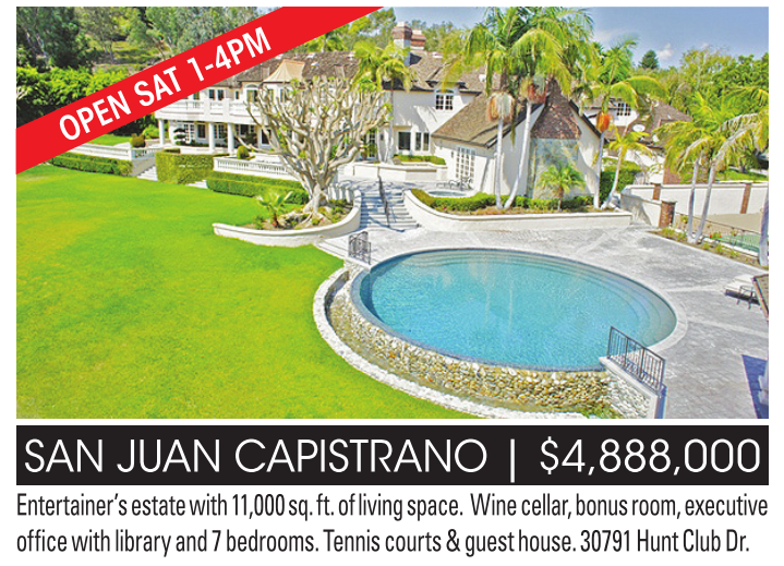 Entertainer’s estate with 11,000 sq. ft. of living space. Wine cellar, bonus room, executive office with library and 7 bedrooms. Tennis courts & guest house. 30791 Hunt Club Dr.