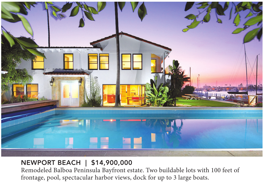 NEWPORT BEACH | $14,900,000 Remodeled Balboa Peninsula Bayfront estate. Two buildable lots with 100 feet of frontage, pool, spectacular harbor views, dock for up to 3 large boats.