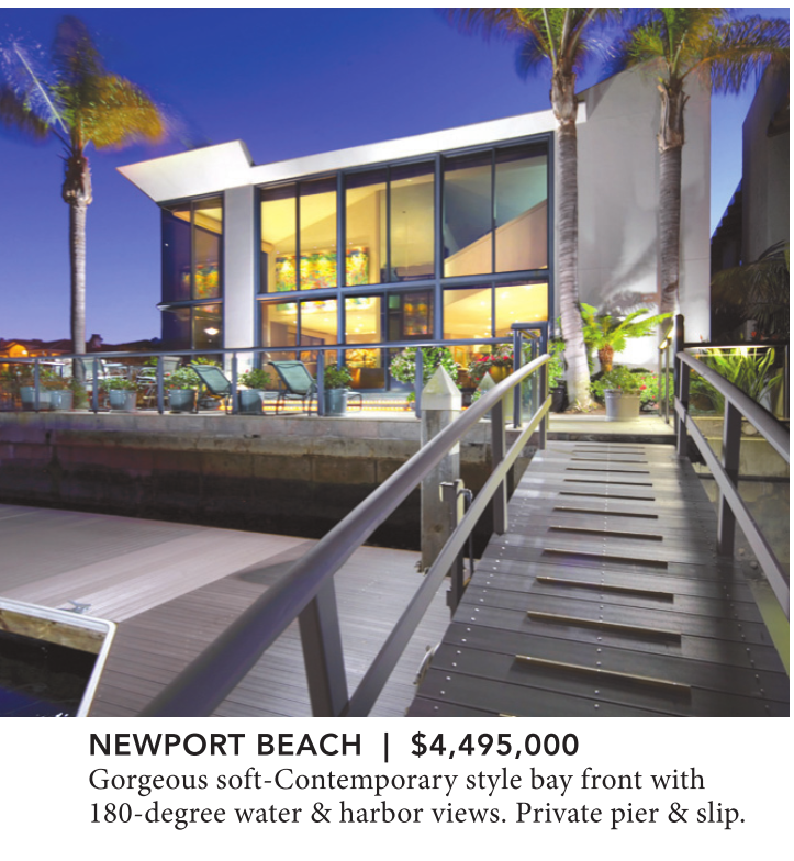 NEWPORT BEACH | $4,495,000 Gorgeous soft-Contemporary style bay front with 180-degree water & harbor views. Private pier & slip.