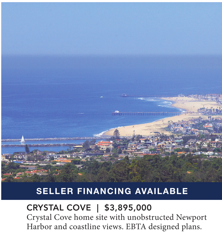 CRYSTAL COVE | $3,895,000 Crystal Cove home site with unobstructed Newport Harbor and coastline views. EBTA designed plans.
