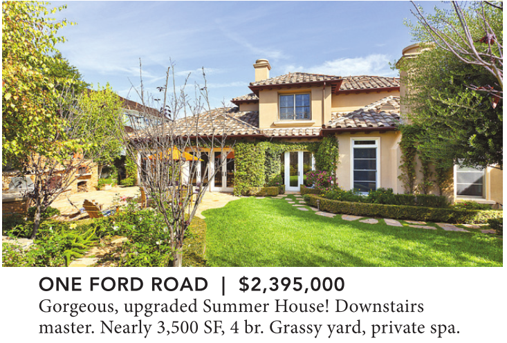 ONE FORD ROAD | $2,395,000 Gorgeous, upgraded Summer House! Downstairs master. Nearly 3,500 SF, 4 br. Grassy yard, private spa.
