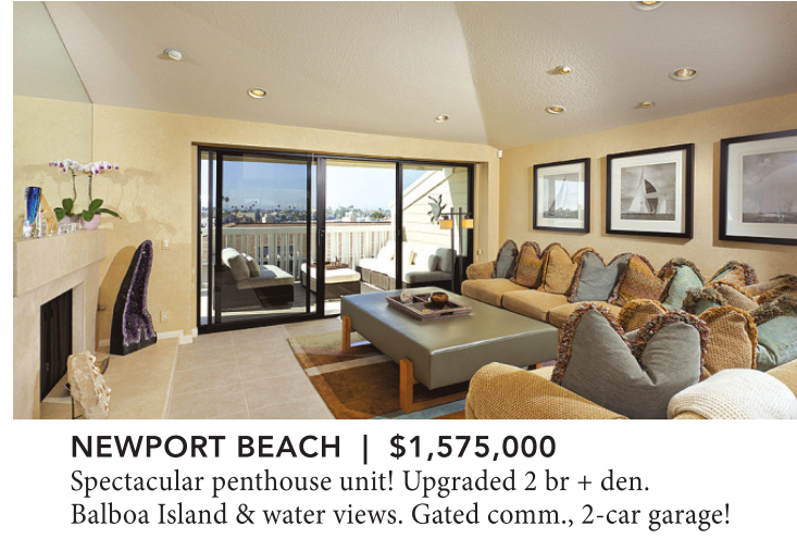 NEWPORT BEACH | $1,575,000 Spectacular penthouse unit! Upgraded 2 br + den. Balboa Island & water views. Gated comm., 2-car garage!