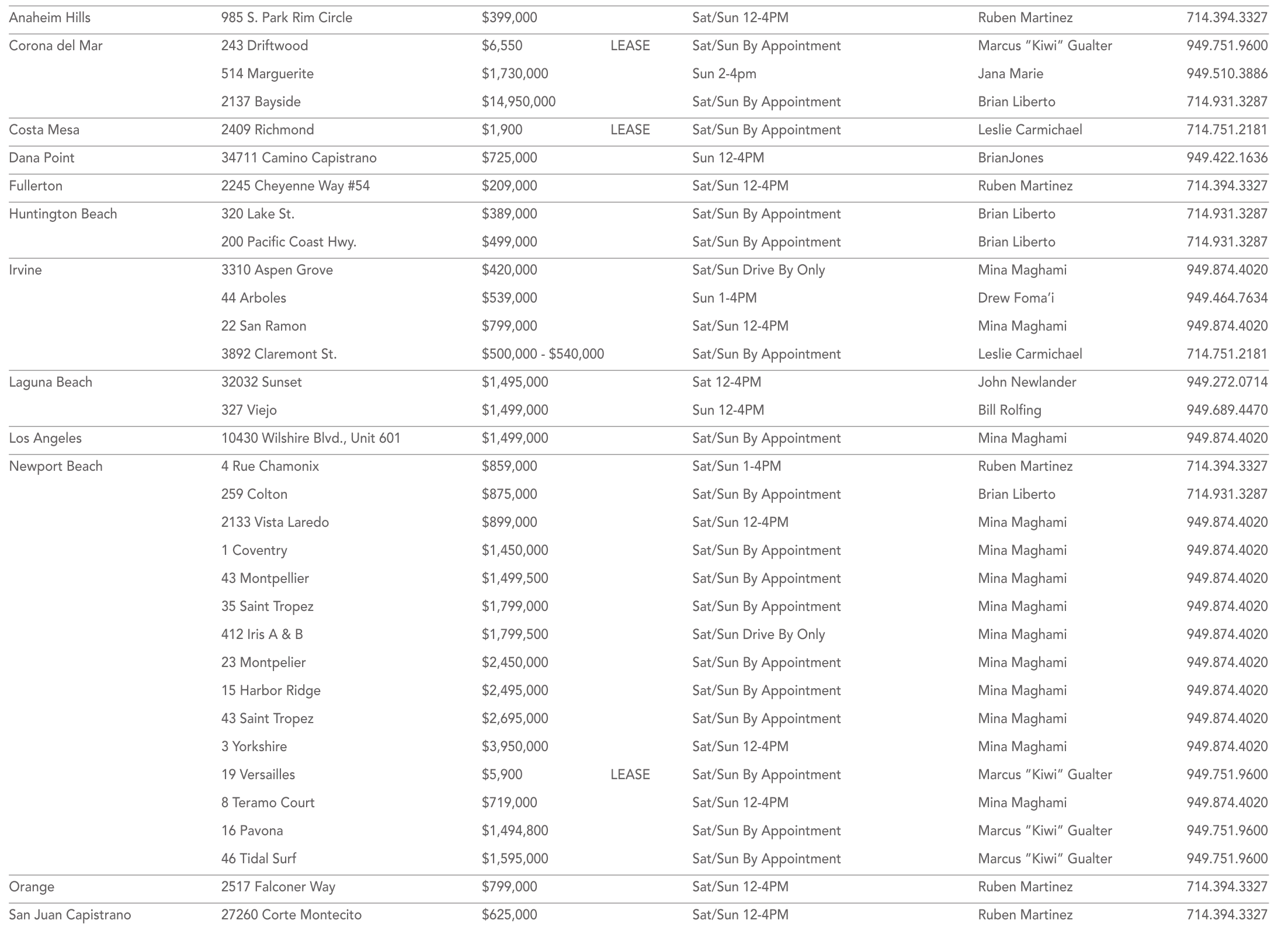 16 Pavona $1,494,800 Sat/Sun By Appointment Marcus ”Kiwi” Gualter 949.751.9600