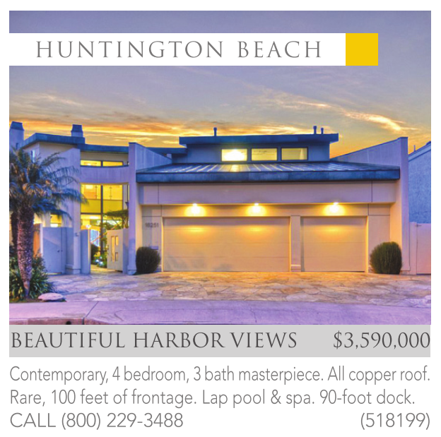 BEAUTIFUL HARBOR VIEWS $3,590,000 Contemporary, 4 bedroom, 3 bath masterpiece. All copper roof. Rare, 100 feet of frontage. Lap pool & spa. 90-foot dock. CALL (800) 229-3488 (518199)