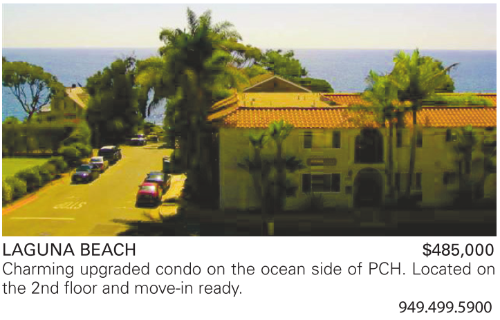 LAGUNA BEACH $485,000 Charming upgraded condo on the ocean side of PCH. Located on the 2nd floor and move-in ready.