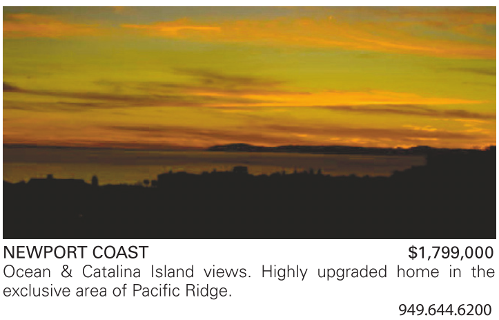 NEWPORT COAST $1,799,000 Ocean & Catalina Island views. Highly upgraded home in the exclusive area of Pacific Ridge.