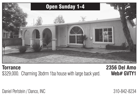 Torrance 2356 Del Amo $329,000. Charming 3bdrm 1ba house with large back yard. Web# GVTY1