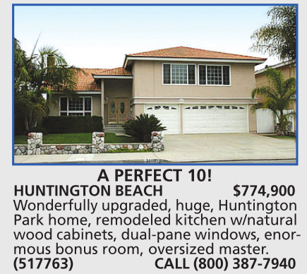 HUNTINGTON BEACH $774,900 Wonderfully upgraded, huge, Huntington Park home, remodeled kitchen w/natural wood cabinets, dual-pane windows, enormous bonus room, oversized master.