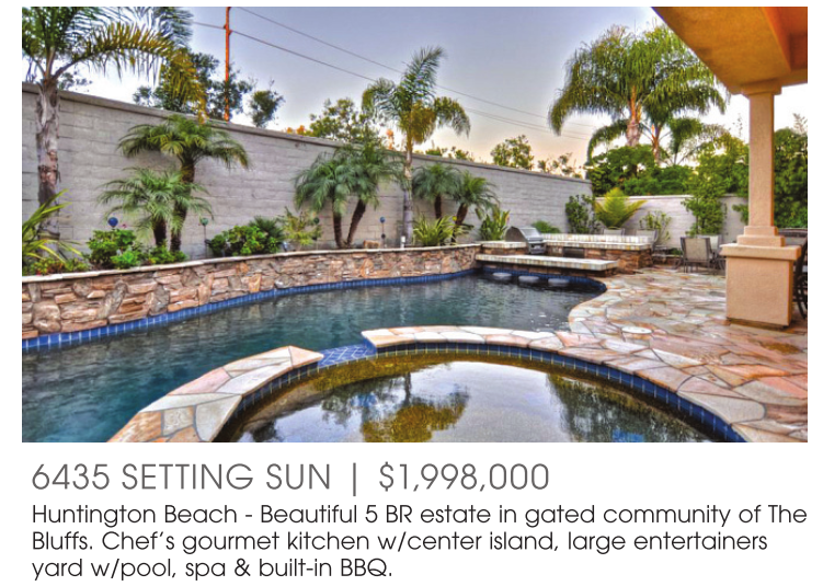 Huntington Beach - Beautiful 5 BR estate in gated community of The Bluffs. Chef’s gourmet kitchen w/center island, large entertainers yard w/pool, spa & built-in BBQ.
