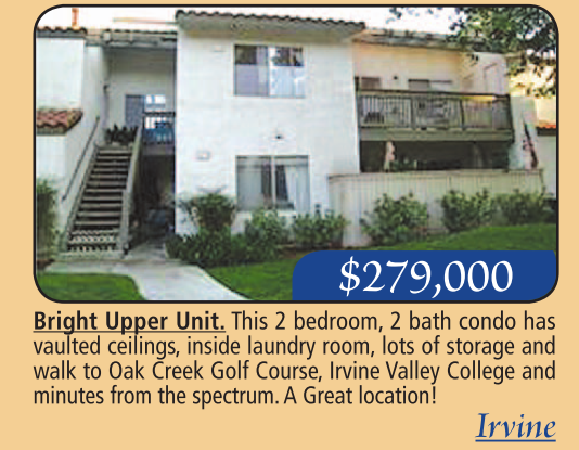 Bright Upper Unit. This 2 bedroom, 2 bath condo has vaulted ceilings, inside laundry room, lots of storage and walk to Oak Creek Golf Course, Irvine Valley College and minutes from the spectrum. A Great location!