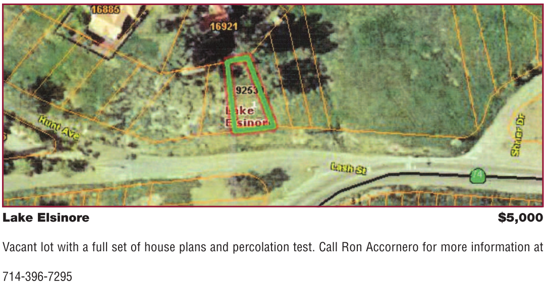 Vacant lot with a full set of house plans and percolation test. Call Ron Accornero for more information at