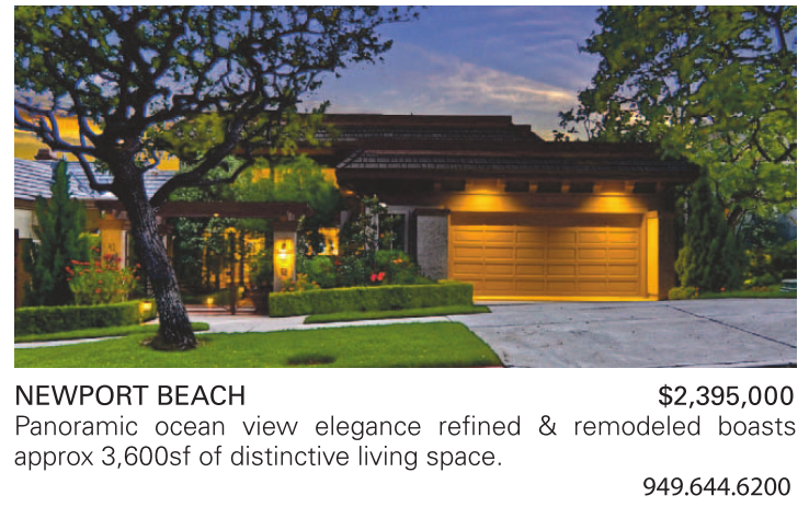 NEWPORT BEACH $2,395,000 Panoramic ocean view elegance refined & remodeled boasts approx 3,600sf of distinctive living space.