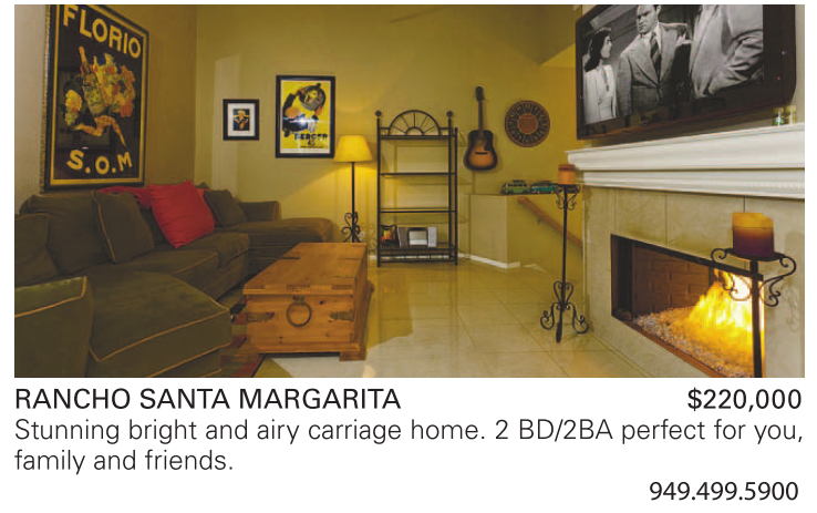 RANCHO SANTA MARGARITA $220,000 Stunning bright and airy carriage home. 2 BD/2BA perfect for you, family and friends.