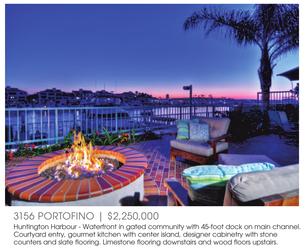 3156 PORTOFINO | $2,250,000 Huntington Harbour - Waterfront in gated community with 45-foot dock on main channel. Courtyard entry, gourmet kitchen with center island, designer cabinetry with stone counters and slate flooring. Limestone flooring downstairs and wood floors upstairs.