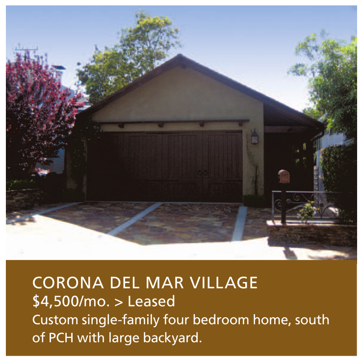 CORONA DEL MAR VILLAGE $4,500/mo. > Leased Custom single-family four bedroom home, south of PCH with large backyard.