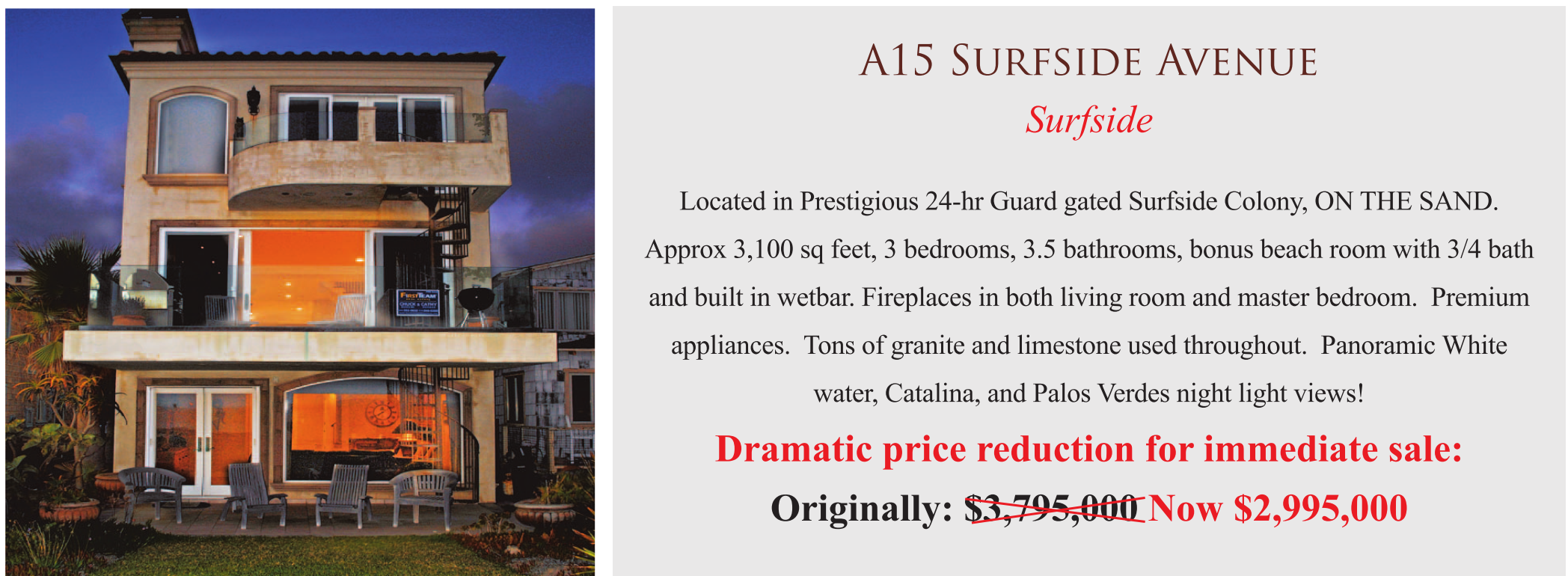 Approx 3,100 sq feet, 3 bedrooms, 3.5 bathrooms, bonus beach room with 3/4 bath and built in wetbar. Fireplaces in both living room and master bedroom. Premium appliances. Tons of granite and limestone used throughout. Panoramic White water, Catalina, and Palos Verdes night light views!