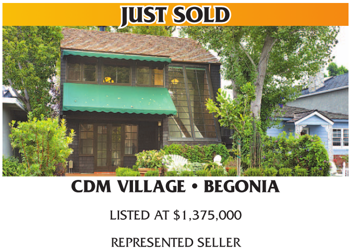 JUST SOLD CDM VILLAGE • BEGONIA LISTED AT $1,375,000 REPRESENTED SELLER See also