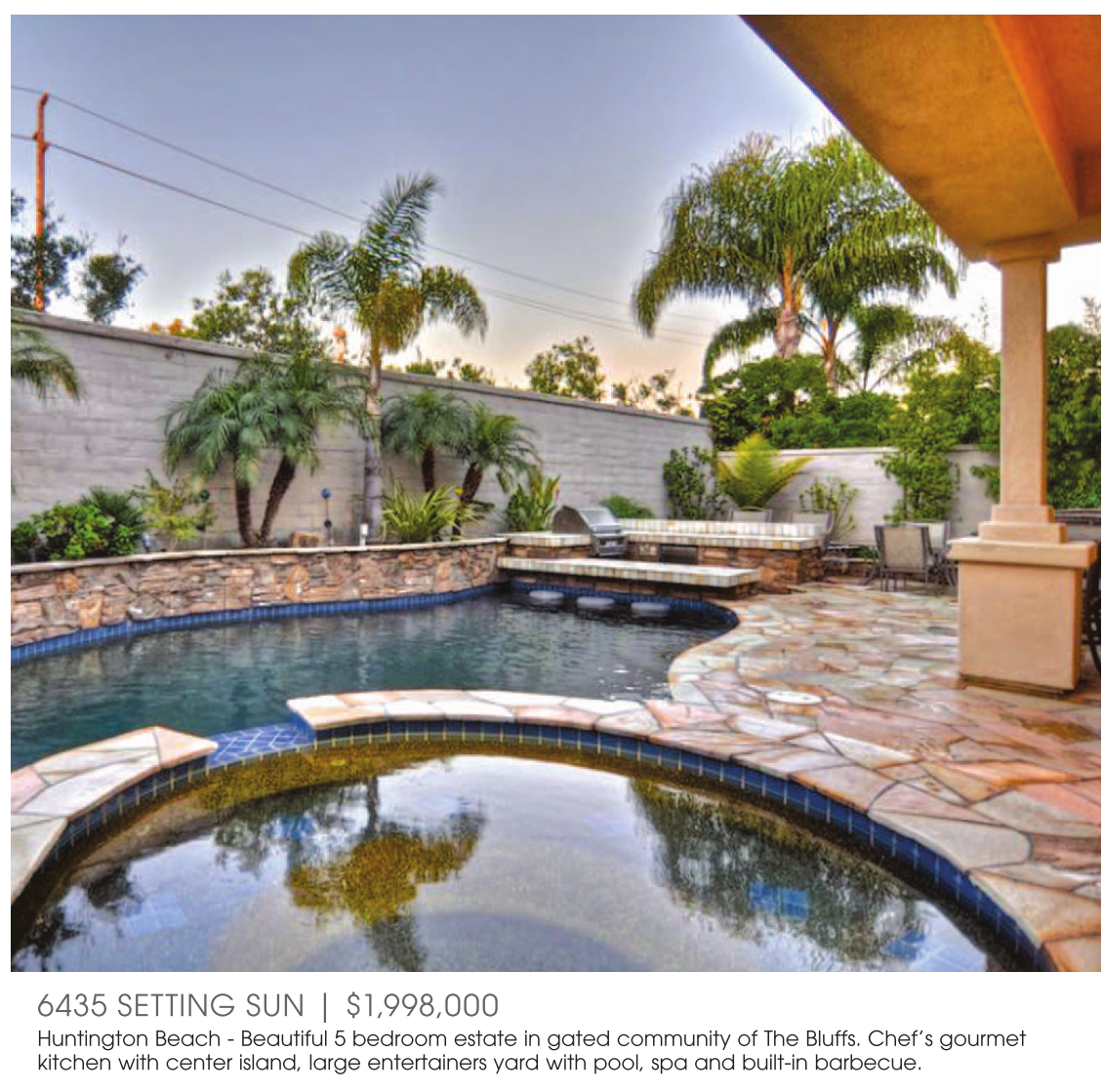 Huntington Beach - Beautiful 5 bedroom estate in gated community of The Bluffs. Chef’s gourmet kitchen with center island, large entertainers yard with pool, spa and built-in barbecue.