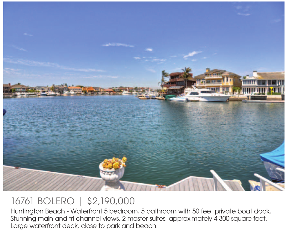 Huntington Beach - Waterfront 5 bedroom, 5 bathroom with 50 feet private boat dock. Stunning main and tri-channel views. 2 master suites, approximately 4,300 square feet. Large waterfront deck, close to park and beach.