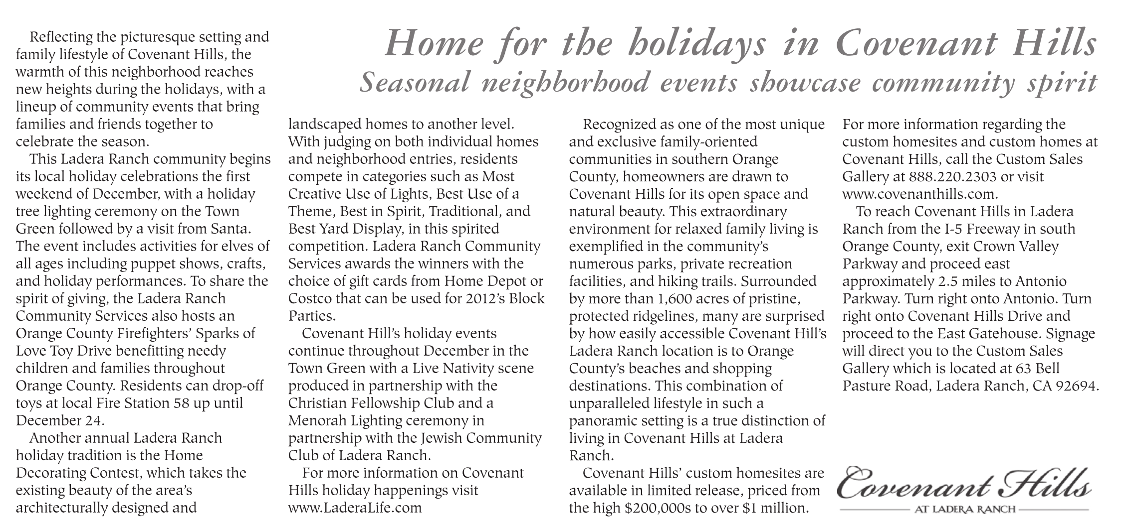 For more information on Covenant Hills holiday happenings visit www.LaderaLife.com
