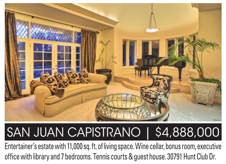 Entertainer’s estate with 11,000 sq. ft. of living space. Wine cellar, bonus room, executive office with library and 7 bedrooms. Tennis courts & guest house. 30791 Hunt Club Dr.