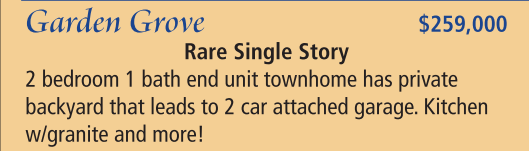 Garden Grove $259,000 Rare Single Story