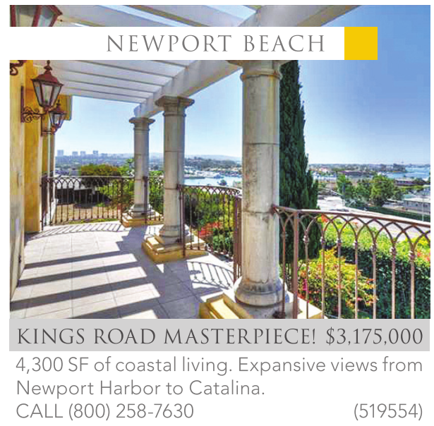 KINGS ROAD MASTERPIECE! $3,175,000 4,300 SF of coastal living. Expansive views from Newport Harbor to Catalina. CALL (800) 258-7630 (519554)