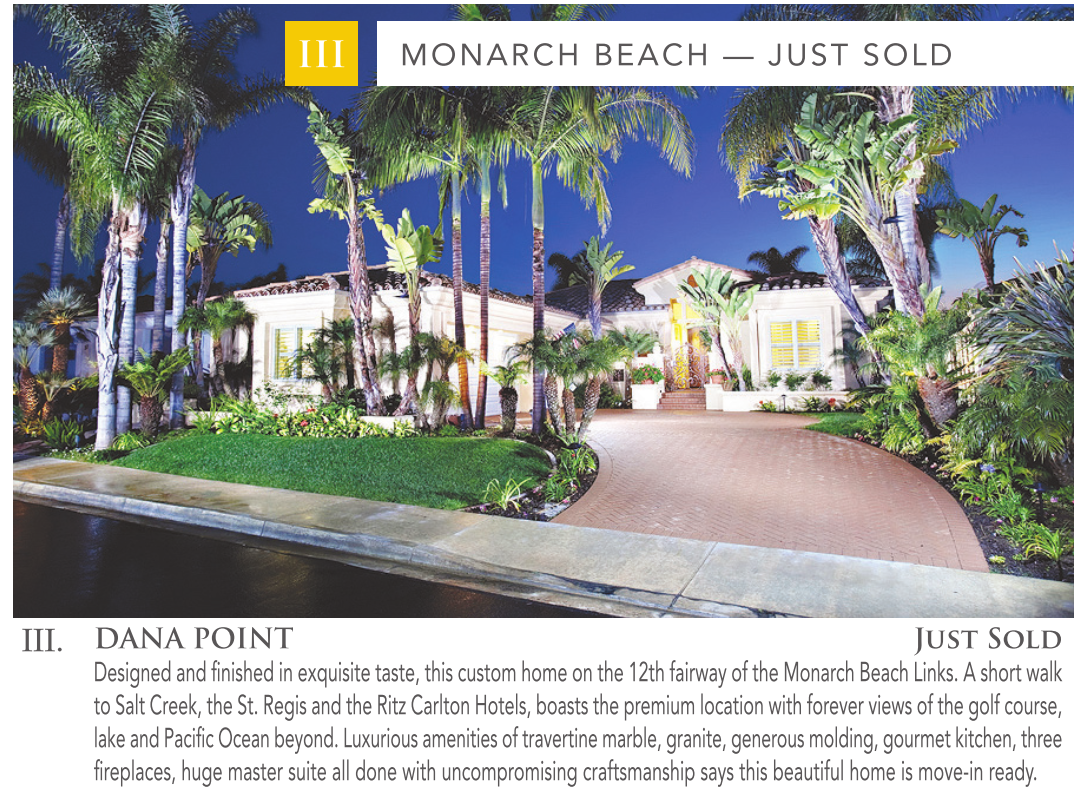 MONARCH BEACH — JUST SOLD