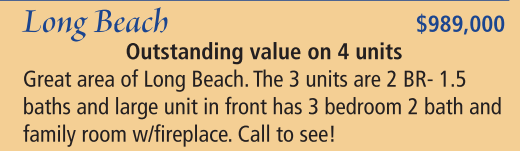 Great area of Long Beach. The 3 units are 2 BR- 1.5 baths and large unit in front has 3 bedroom 2 bath and family room w/fireplace. Call to see!